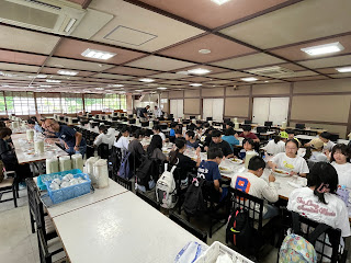 ほぼ定刻に昼食場所の冨士屋観光センターに着きました。お待ちかねの昼食はカレーライスです。バス移動だけなのですが、お腹は空くものです。食べ終わった後もまだ腹一分目なんて声も聞こえてきました。皆元気です!