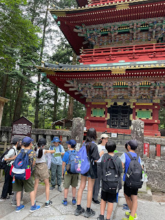 東照宮では、行動班での見学です。各班で分担し、事前に学習したことを実物の前で発表します。近くを通りかかった大人が足を止め、聞き入る様子も見られました。